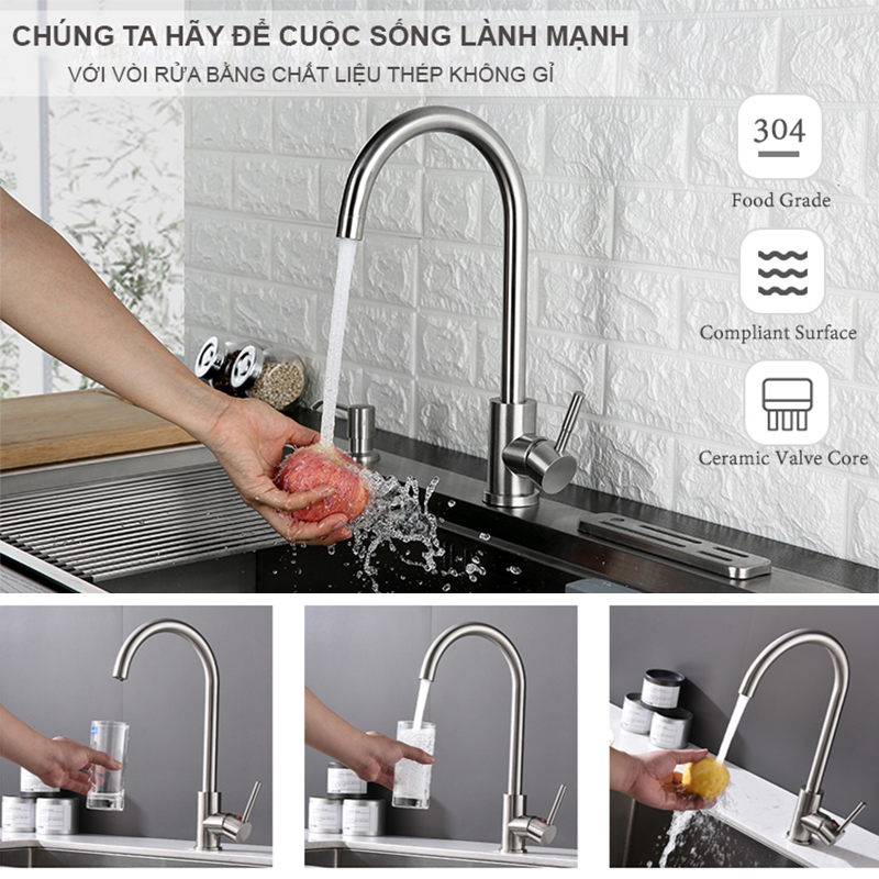 2. Xoay được 360 độ nên dễ dàng sử dụng không góc khuất cho dù chậu rửa bát 1 hố hay 2-3 hố dễ dàng vệ sinh sạch sẽ.