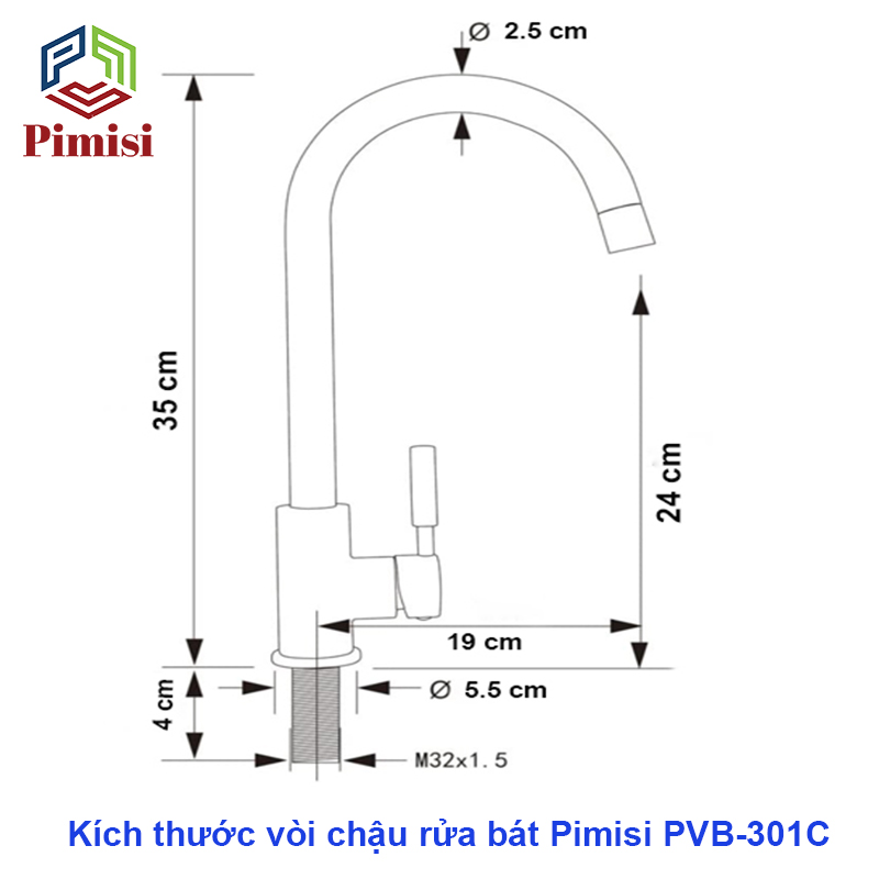- Bạn nên tham khảo kỹ kích thước vòi chậu rửa bát Pimisi PVB-301C (xem chi tiết ở phần hình ảnh) trước khi đặt hàng, để quá trình lắp đặt dễ dàng, đúng với thiết kế.