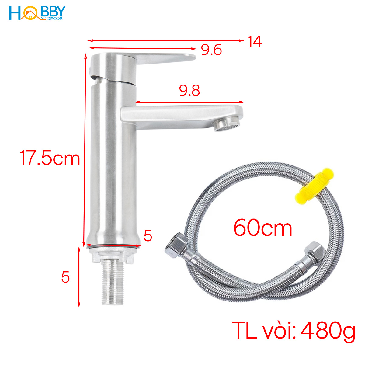 Vòi xả chậu rửa mặt lavabo lạnh Inox 304 Hobby Home Decor LBL5