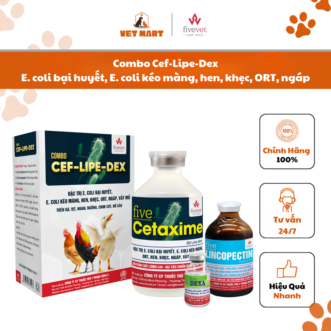 Combo Five-Cetaxime, Five-Lincopectin và Five-Dexa - Giải pháp hiệu quả cho bệnh đường hô hấp và tiêu hóa gia cầm