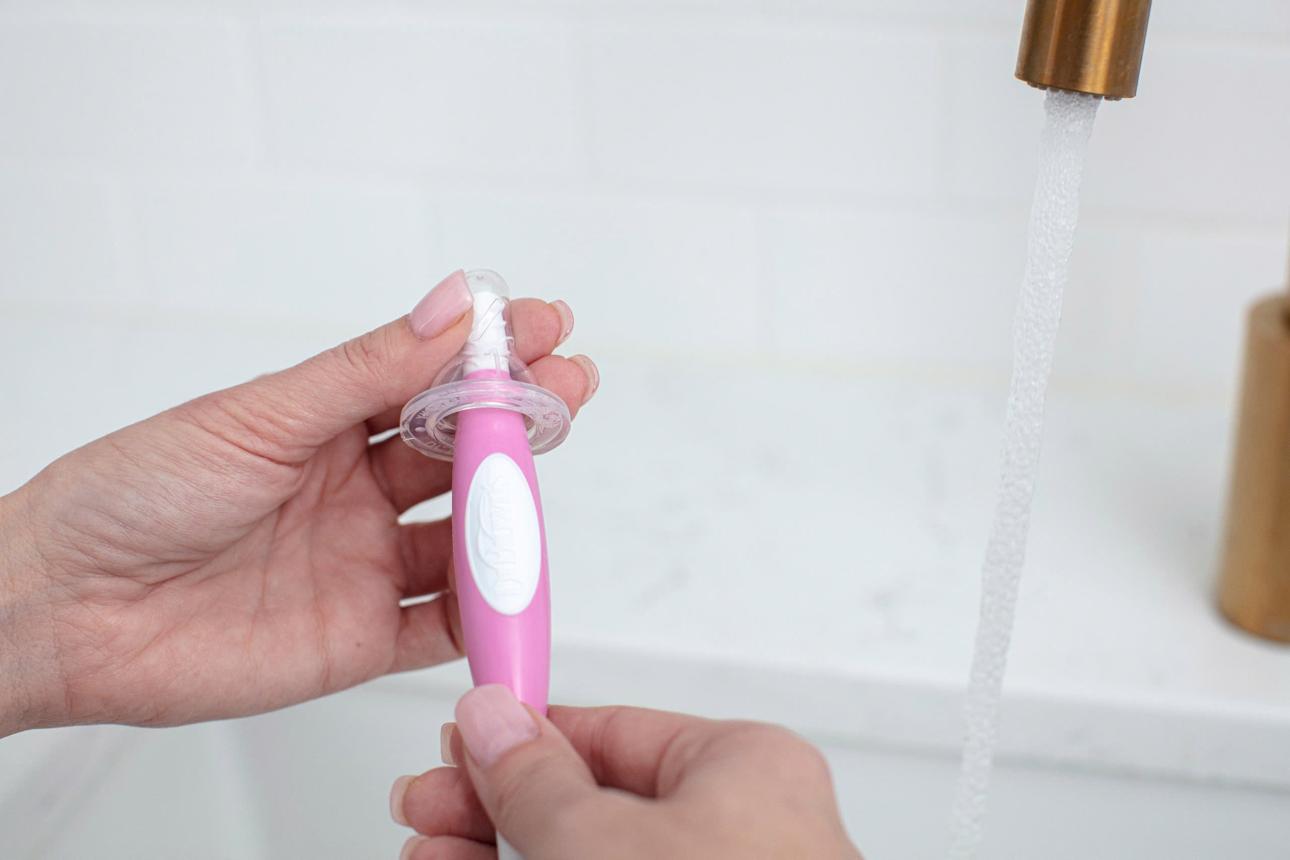 + Kết hợp 01 cây cọ nhỏ được lồng phía dưới tay cầm của cây cọ lớn, thiết kế đặc biệt với các gờ ở đế, dễ dàng tiếp cận các khe nhỏ để làm sạch núm ty, ty ngậm, hay các đồ dùng có diện tích nhỏ khác