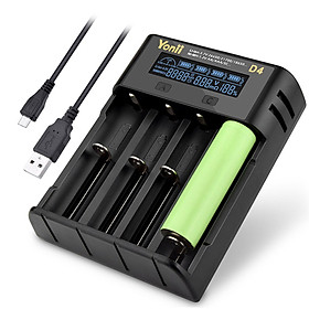 Bộ sạc pin YONII D4 LCD 18650 4 khe cắm cho pin 18650 21700 26650 Lithium AA AAA Nimh