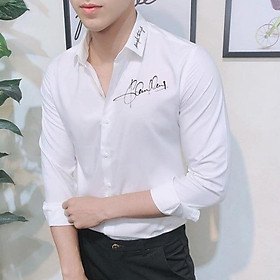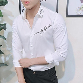 Áo Sơ Mi Nam Dài Tay Phối Họa Tiết Chữ Ký Cổ Áo Thời Trang Hàn Quốc Sành Điệu