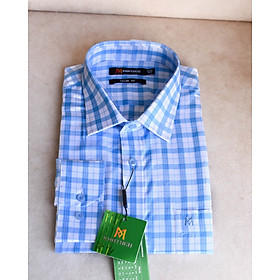 Áo Sơ Mi Nam Công Sở Trung Niên Thương Hiệu Anton Màu Xanh Dương Dài Tay Kẻ Caro Trắng Xanh Vải Cotton – AC154