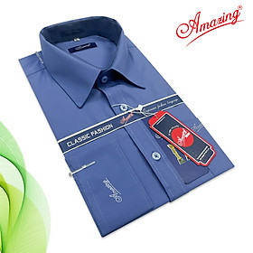 Áo somi nam Amazing, thời trang công sở cao cấp trung niên, form rộng dáng suông, dài tay, đuôi tôm, big size