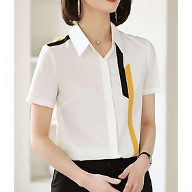 Áo Sơ Mi Nữ Màu Trắng Ngắn Tay Sọc Vàng Mẫu FR02 Thời Trang Nữ PONIVA Chất Vải Mềm Mịn, Tạo Cảm Giác Thoải Mái Khi Mặc