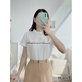 Áo sơ mi nữ ngắn tay màu trắng họa tiết thêu cổ Peter Pan Burny