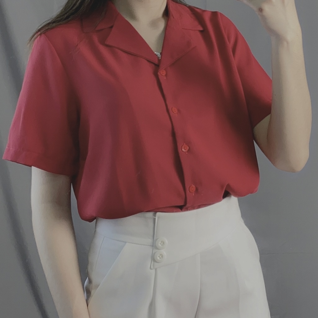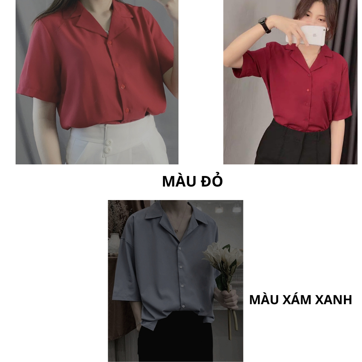 Áo sơ mi rộng cổ vest tay ngắn nam nữ unisex form hàn quốc trẻ trung sinh động vải lụa mềm mát-VRN01