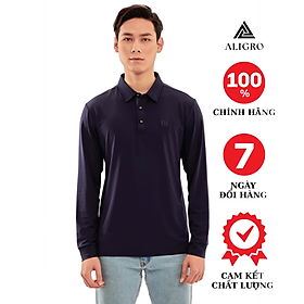 Áo thun dài tay nam cổ bẻ màu xanh đen ALIGRO chất liệu Cotton cao cấp mềm nhẹ ALGAPD004