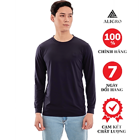 Áo thun nam dài tay Aligro màu navy co giãn 4 chiều chất thun cao cấp ALGAPD059