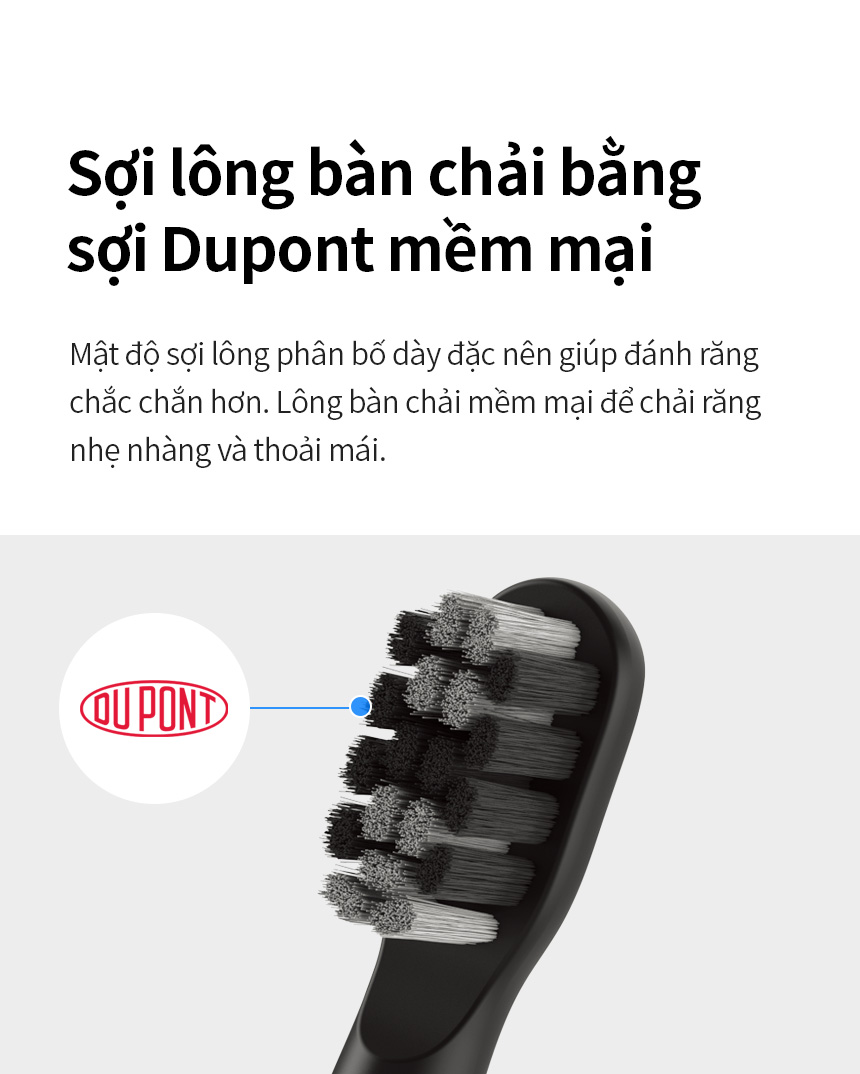 - Sợi lông bàn chải bằng sợi Dupont mềm mại. Mật độ sợi lông phân bố dày đặc