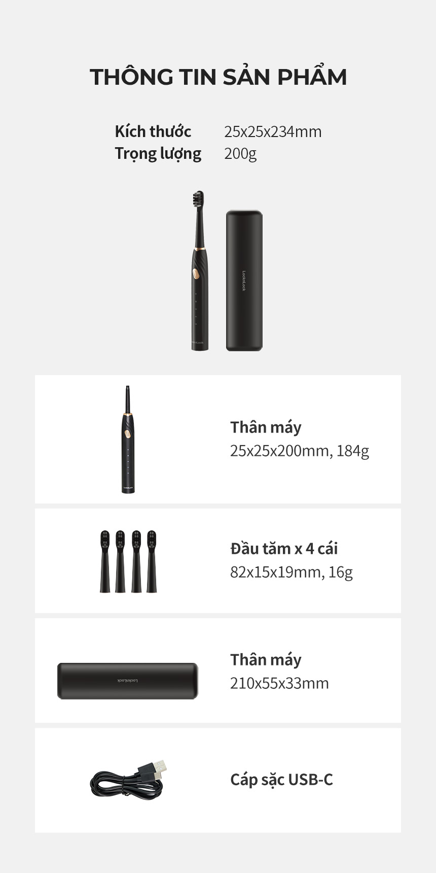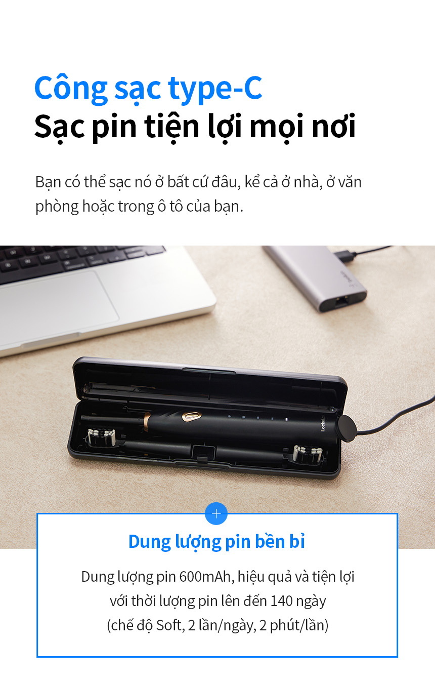 ENR321BLK - Bàn chải đánh răng điện LocknLock Electric toothbrush DC3.7V, 1W.