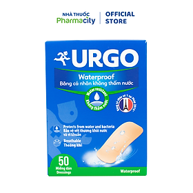 Băng cá nhân không thấm nước URGO Waterproof bảo vệ vết thương khỏi nước và vi khuẩn (Hộp 50 miếng)