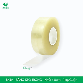 BK4A - 12 cuộn băng keo trong 1kg, khổ 4.8cm lõi nhựa - Băng dính đóng hàng, băng keo khổ lớn