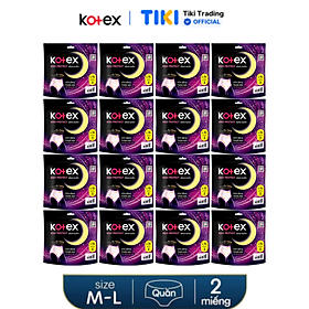 (Thùng 16 gói) Băng vệ sinh Kotex ban đêm dạng quần cỡ M/L và L/XL 2 quần/1 gói