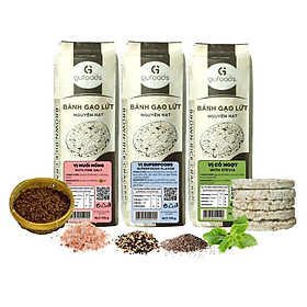 Combo 3 Gói Mix Vị Huyền Mễ, Cỏ Ngọt, Superfoods, Muối Hồng, Bánh Gạo Lứt Ăn Kiêng GUfoods 170g - Tốt Người Giảm Cân, Ăn Kiêng, Ăn Vặt Healthy, Tập Gym, Ăn Chay