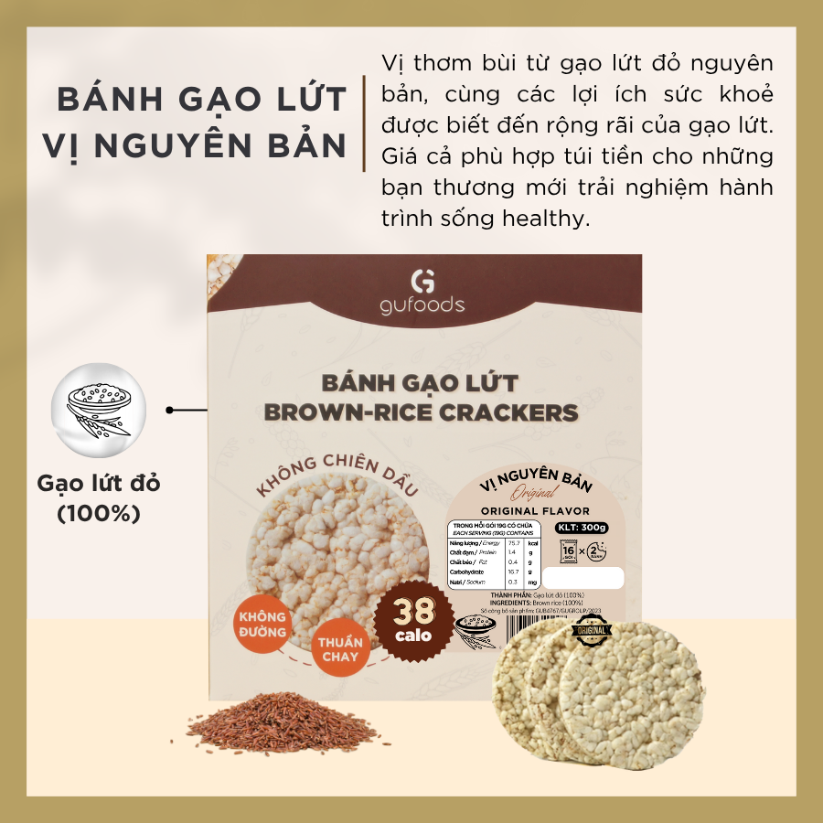 - Bánh gạo lứt - Vị nguyên bản: Gạo lứt đỏ (100%)