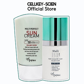 Combo Kem Nền Kem Chống Nắng Che Khuyết Điểm Kiềm Dầu Dưỡng Trắng Chống Nhăn Cho Da Nhạy Cảm Cellkey-Scien BB Sun Cream (80ml)