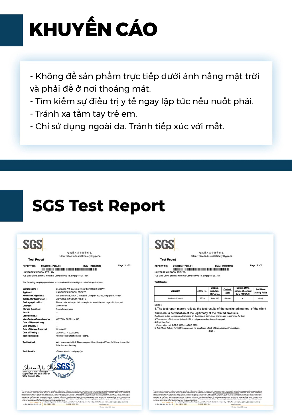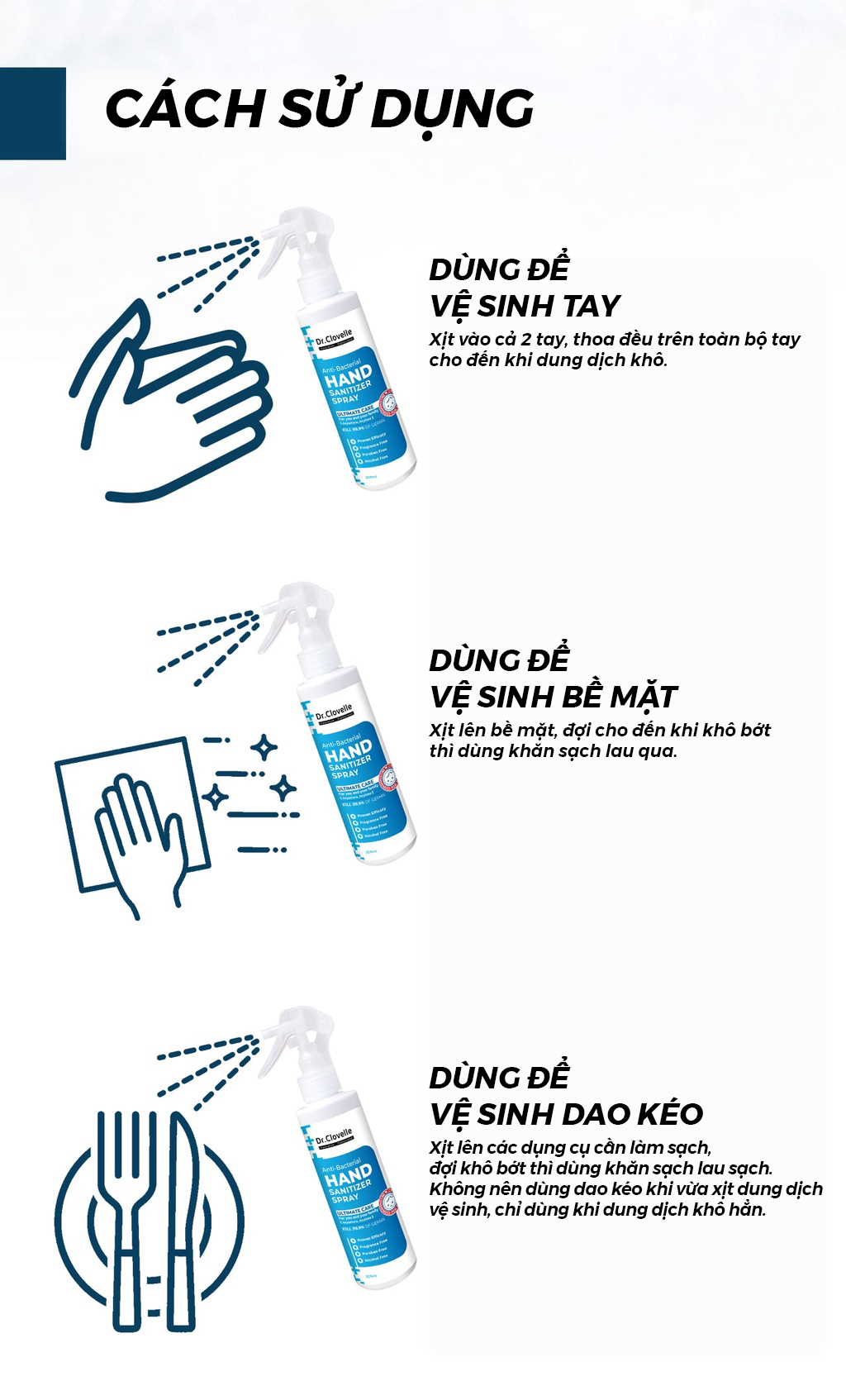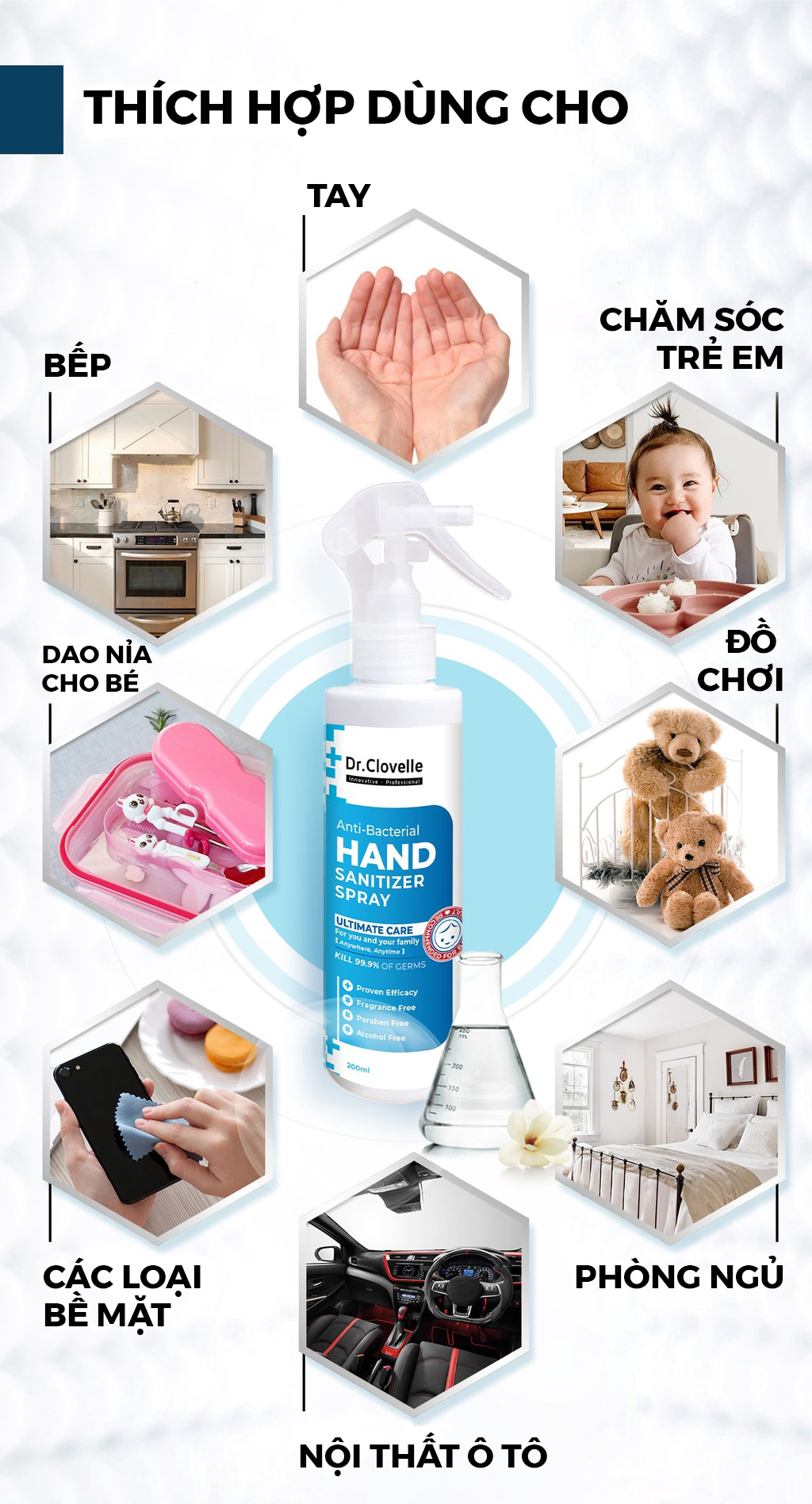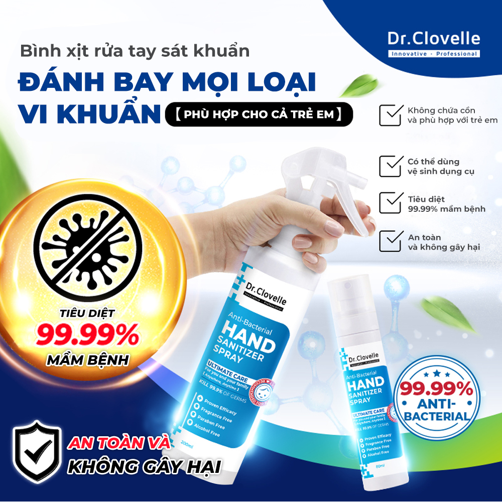 Bình xịt rửa tay Dr Clovelle đánh bay 99.99% vi khuẩn, không chứa cồn, thích hợp cho cả trẻ em (200ml/chai)