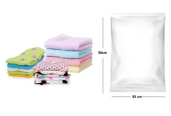 + 2 túi cỡ 50x35cm -> Chỉ riêng túi này là không có hút chân không dùng để đựng đồ lót, vỏ gối, ga, khăn mặt