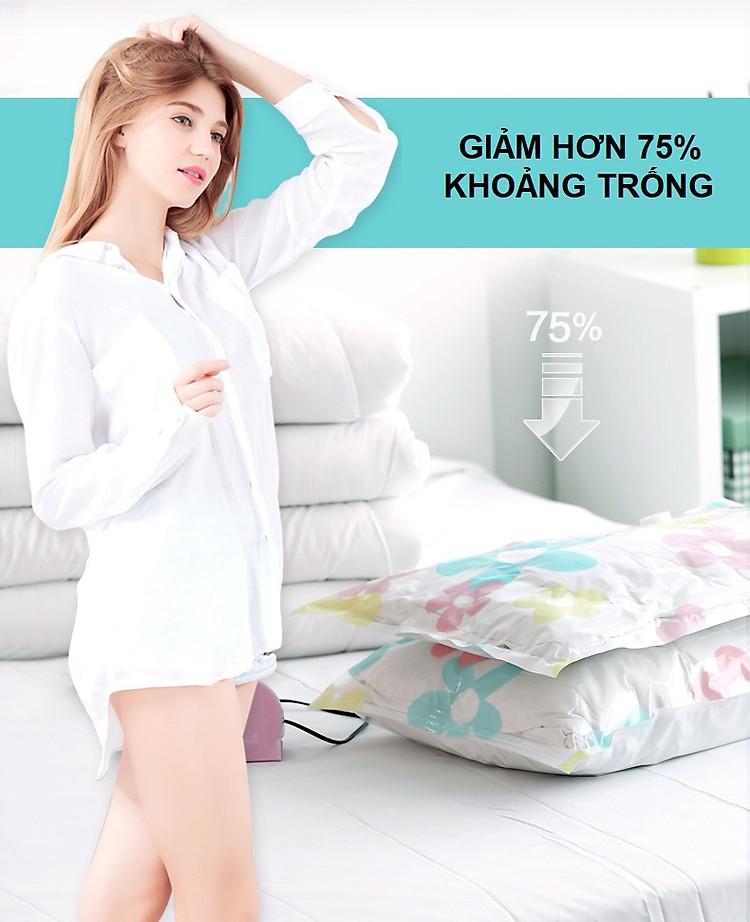 - Đựng và bảo quản chăn màn, ga, gối, quần áo, khăn mặt … nén lại chỉ còn 1/4 kích thước ban đầu