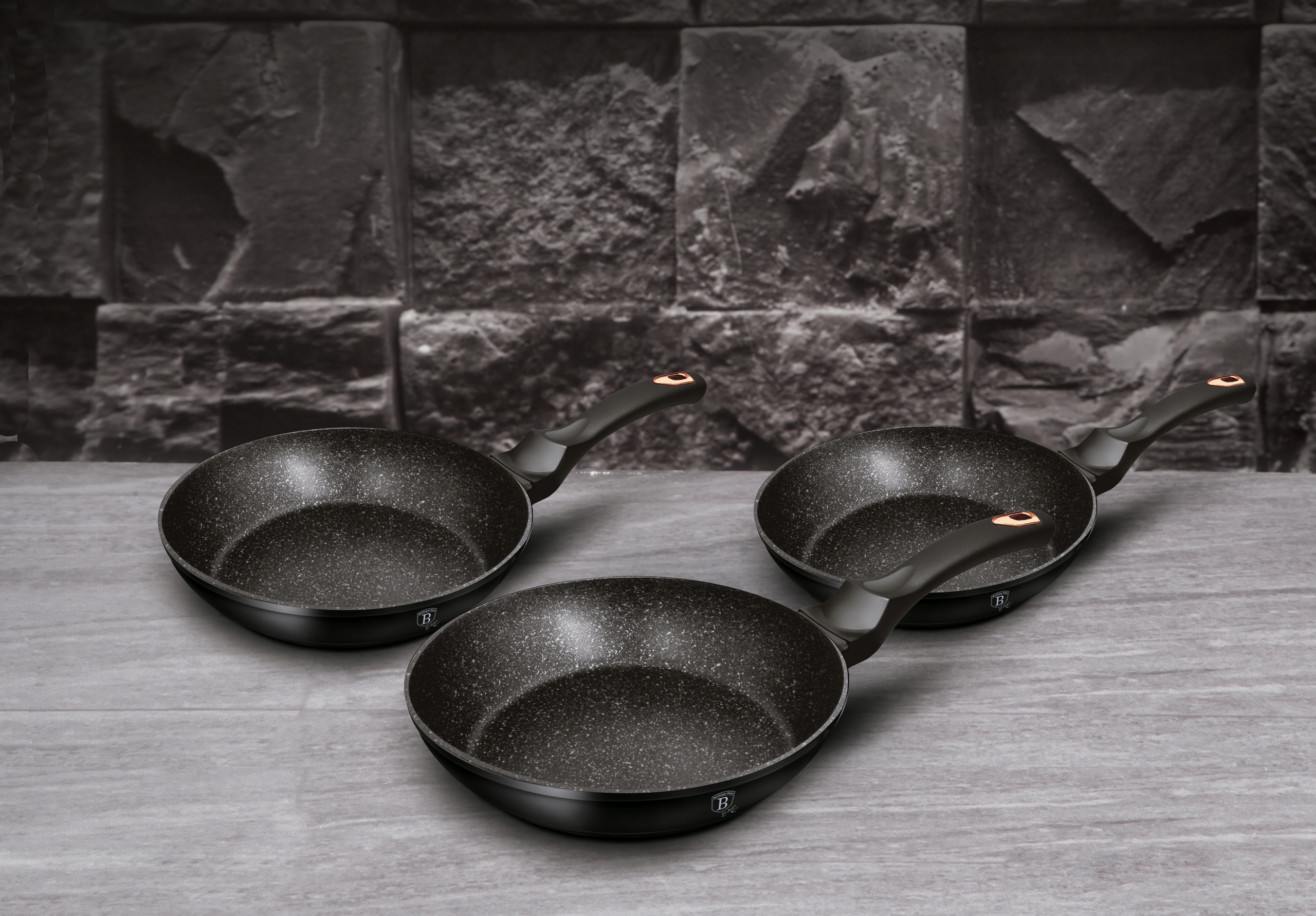 Bộ 3 chảo Berlinger Haus BH/6158F 3pcs Frypan Set 20 - 24 - 28cm chống dính phủ đá màu đen - Black Rose Collection. Phù hợp mọi đối tượng người dùng, GIÁ SIÊU TỐT