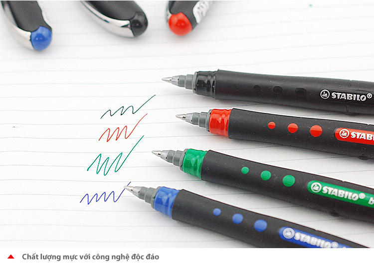 Bộ 4 Bút bi ký STABILO bl@ck+ F 0.7mm xanh+ đỏ+ đen+ xanh lá (BLKF-C4)