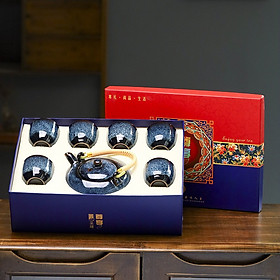Bộ Ấm Chén Gốm Sứ Gosu Kiến Trản Men Hỏa Biến Xanh Lòng Cao Cấp