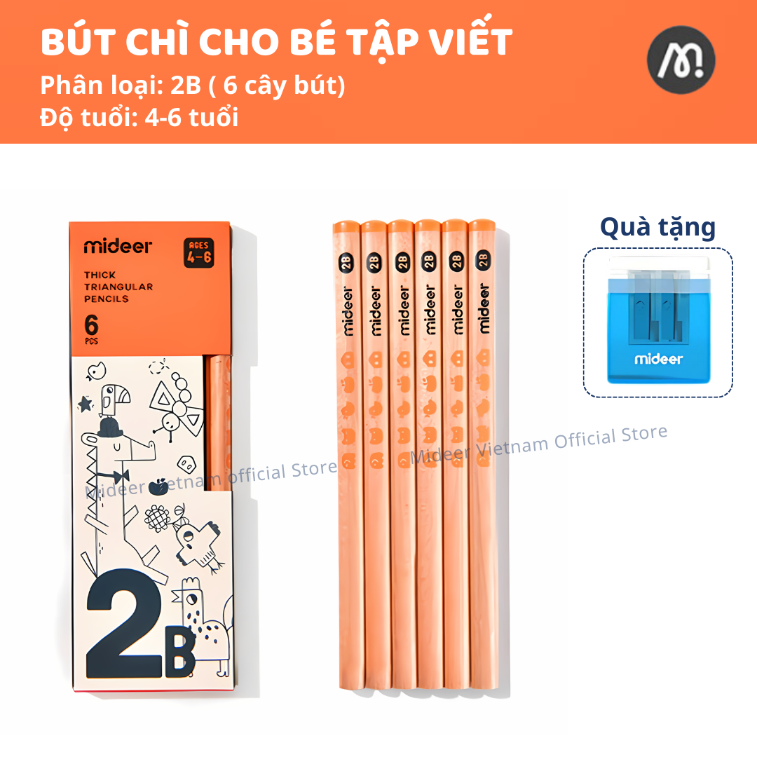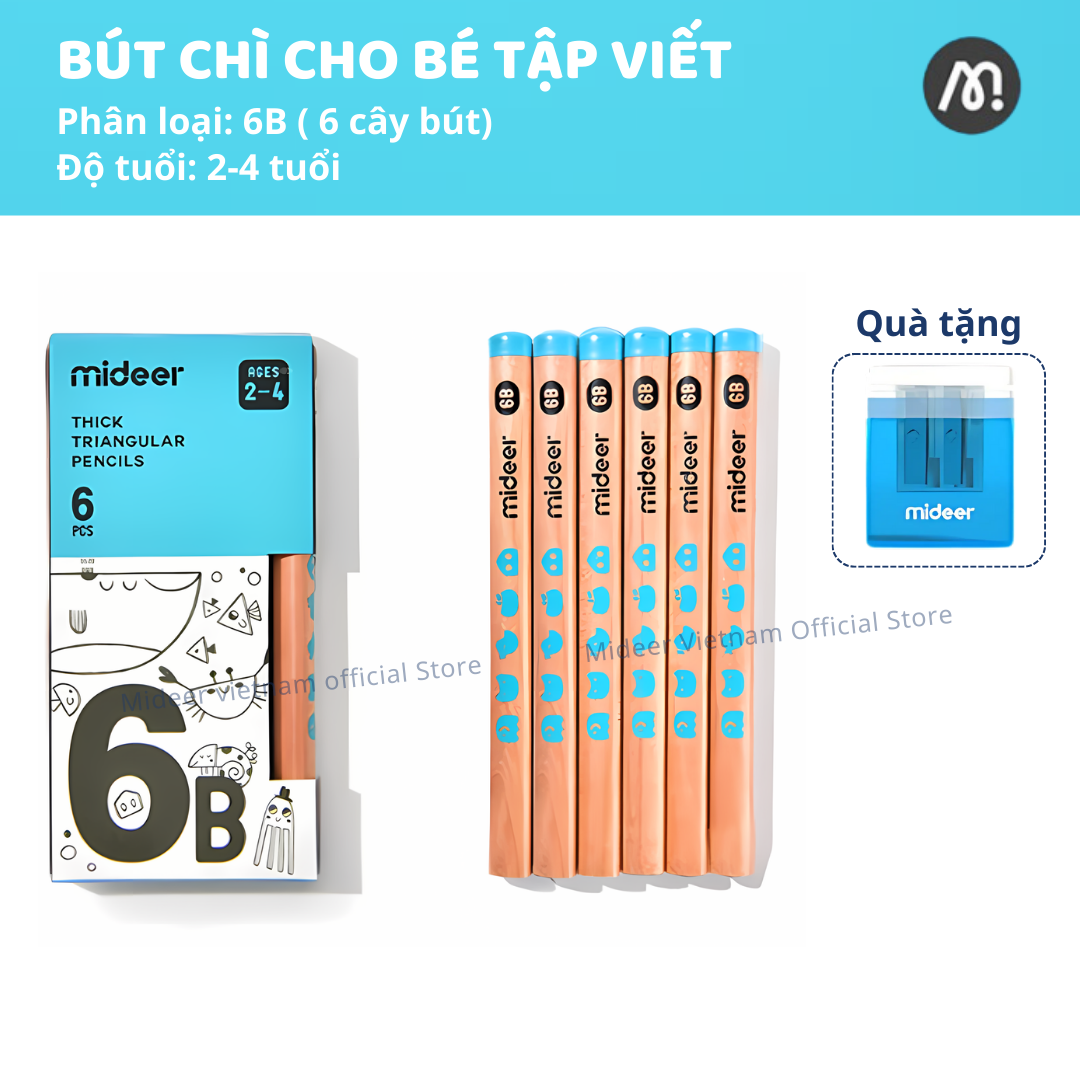 Bút Chì 2B 4B 6B Mideer cho bé tập viết cạnh tam giác Thick Triangular Pencils