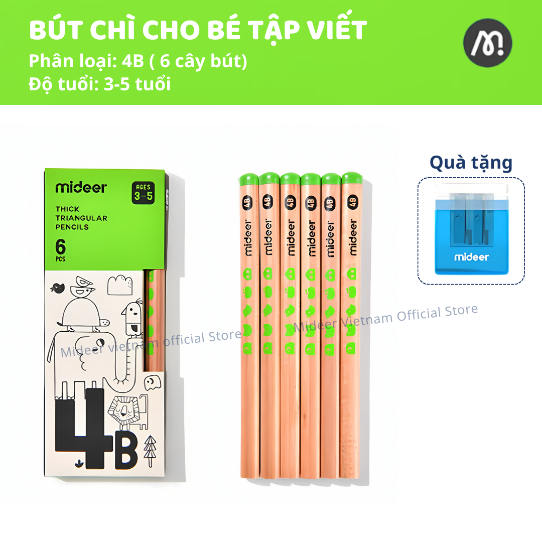Bút chì Mideer không chỉ giúp trẻ tập viết mà còn rèn luyện cách cầm bút đúng nhờ thiết kế tam giác dày, dễ cầm nắm. Với thân bút dày, diện tích tiếp xúc lớn giúp trẻ dễ giữ chặt, rất lý tưởng cho bé trong giai đoạn mới bắt đầu học viết.
