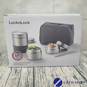 Bộ hộp cơm giữ nhiệt LocknLock Lunch Box LHC8052S02, Hàng chính hãng, 3 hộp giữ nhiệt, kèm túi và bộ muỗng đũa