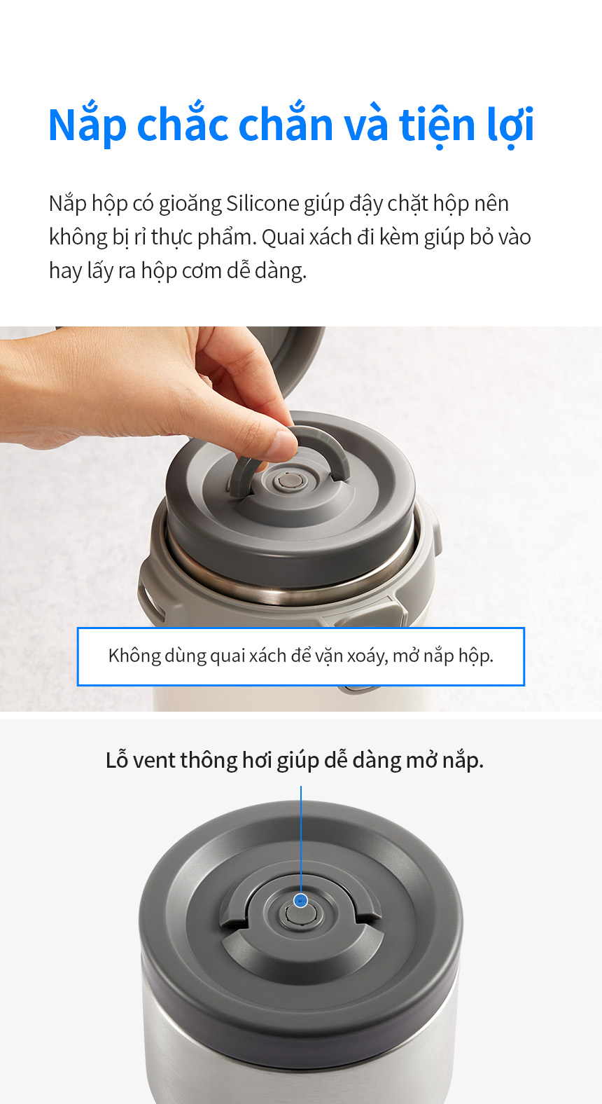 Quai xách chỉ được sử dụng để cầm, nắm sản phẩm. Không dùng quai xách để vặn xoáy, mở nắp hộp.