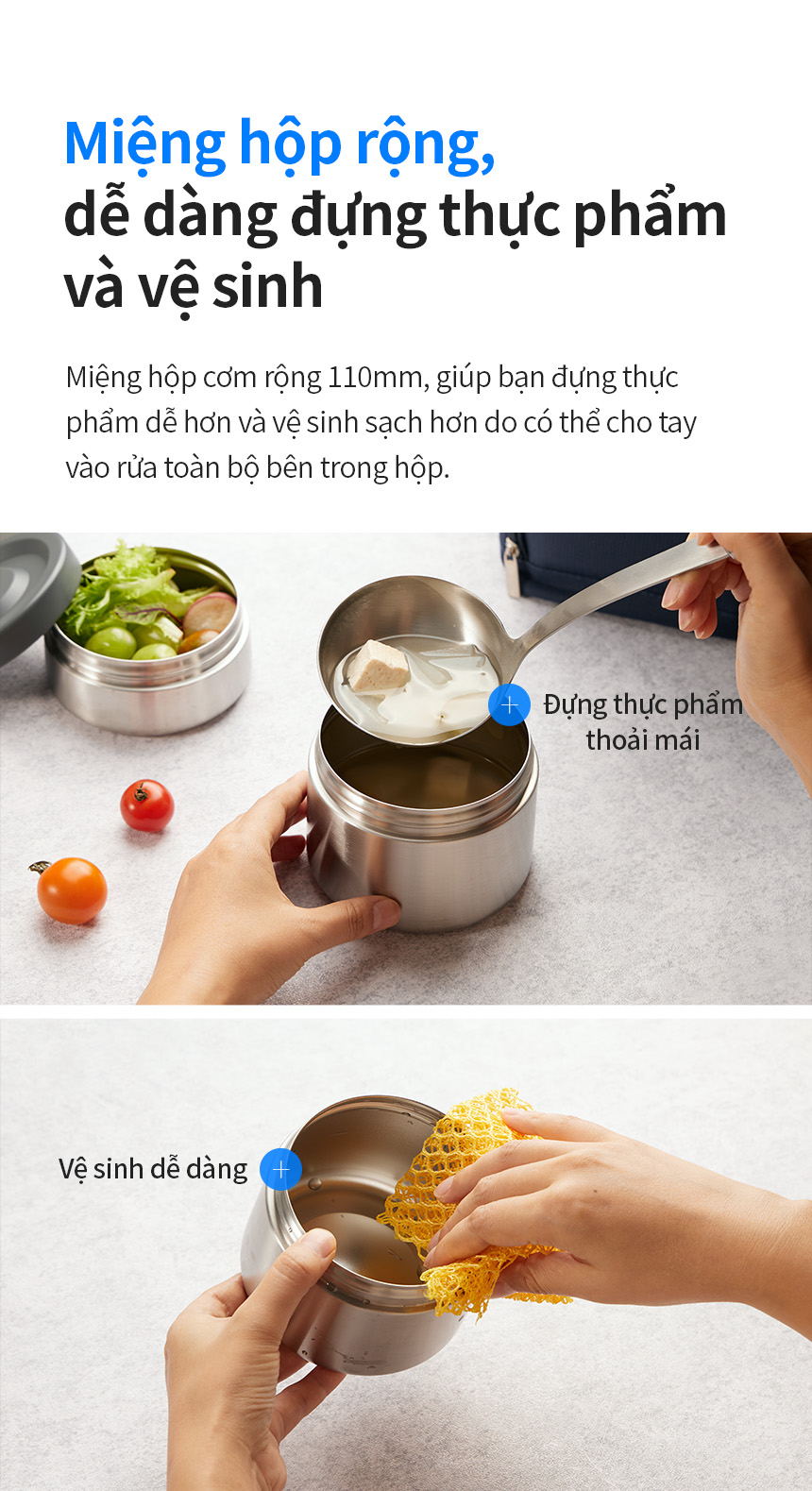 Sản phẩm được làm bằng chất liệu thép không gỉ cao cấp, bền chắc, an toàn cho sức khỏe người sử dụng. Ngoài ra sản phẩm còn giúp bảo quản thực phẩm luôn sạch sẽ, tươi ngon và giữ nhiệt đến 6 giờ tiện lợi để mang đi khắp mọi nơi mà không cần phải hâm nóng thức ăn