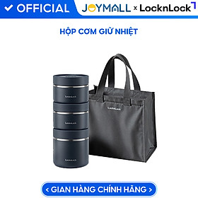 Bộ hộp cơm giữ nhiệt LocknLock Lunch Box màu xanh navy LHC8052S02N, Hàng chính hãng, 3 hộp giữ nhiệt, kèm túi và bộ muỗng đũa - JoyMall