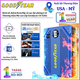 Bộ kích bình ắc quy kiêm bơm lốp và sạc dự phòng dung lượng 10400mAh dùng cho ô tô thương hiệu Mỹ cao cấp Goodyear GY-5282 - Hàng Nhập Khẩu