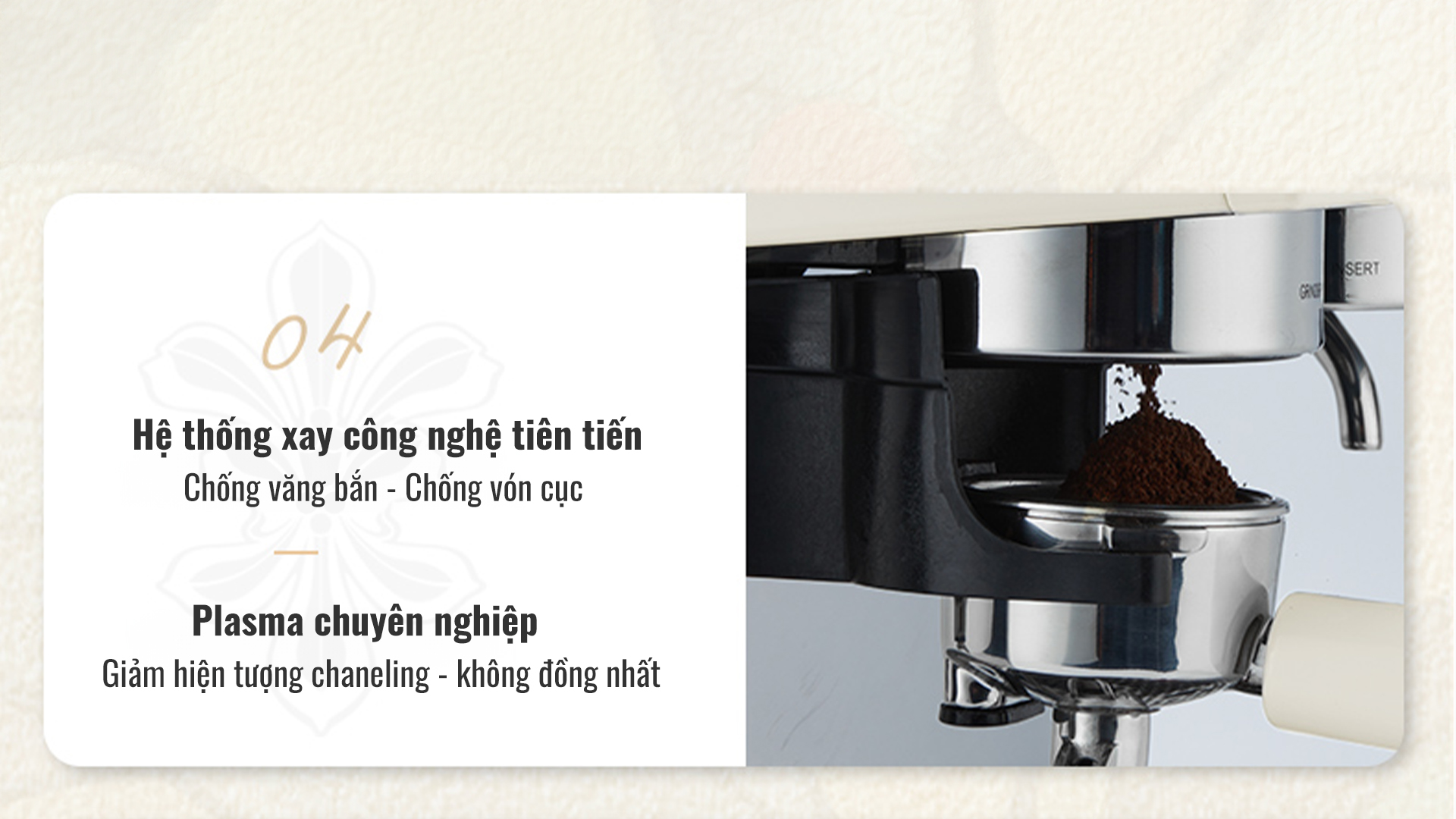 Công nghệ xay cũng là cao cấp với chống vón cục và văng bắn PLASMA.