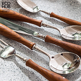 Bộ dao muỗng nĩa inox Cao Cấp, cán gỗ ECOHUB màu bạc sang trọng, Sử dụng cho nhà hàng cao cấp / cá nhân