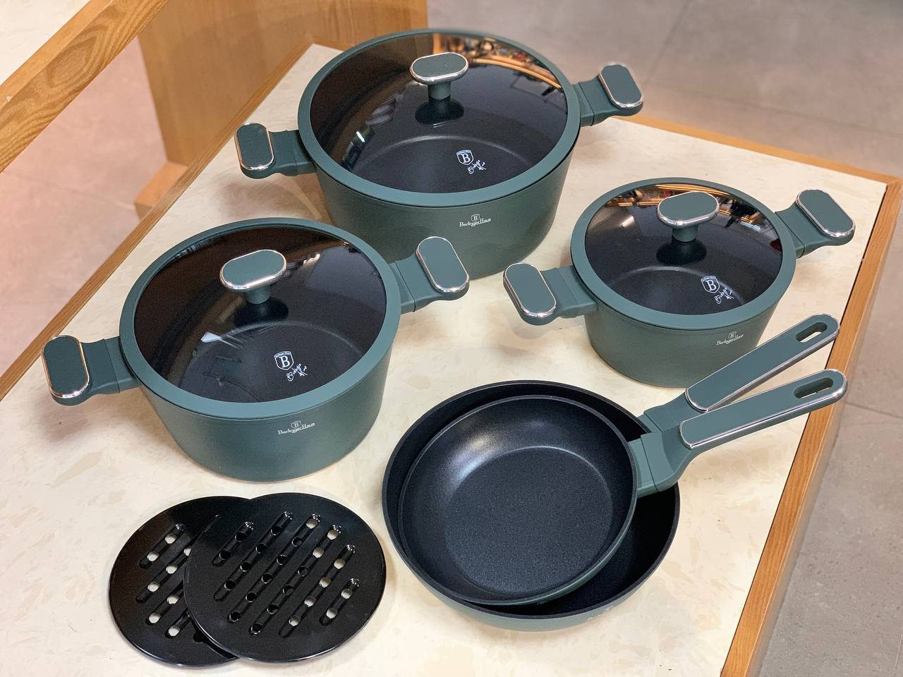 Bộ nồi Berlinger Haus BH/8207 10pcs Cookware Set 5 món – 10 chi tiết màu xanh rêu – Matte Green Collection Hàng chính hãng