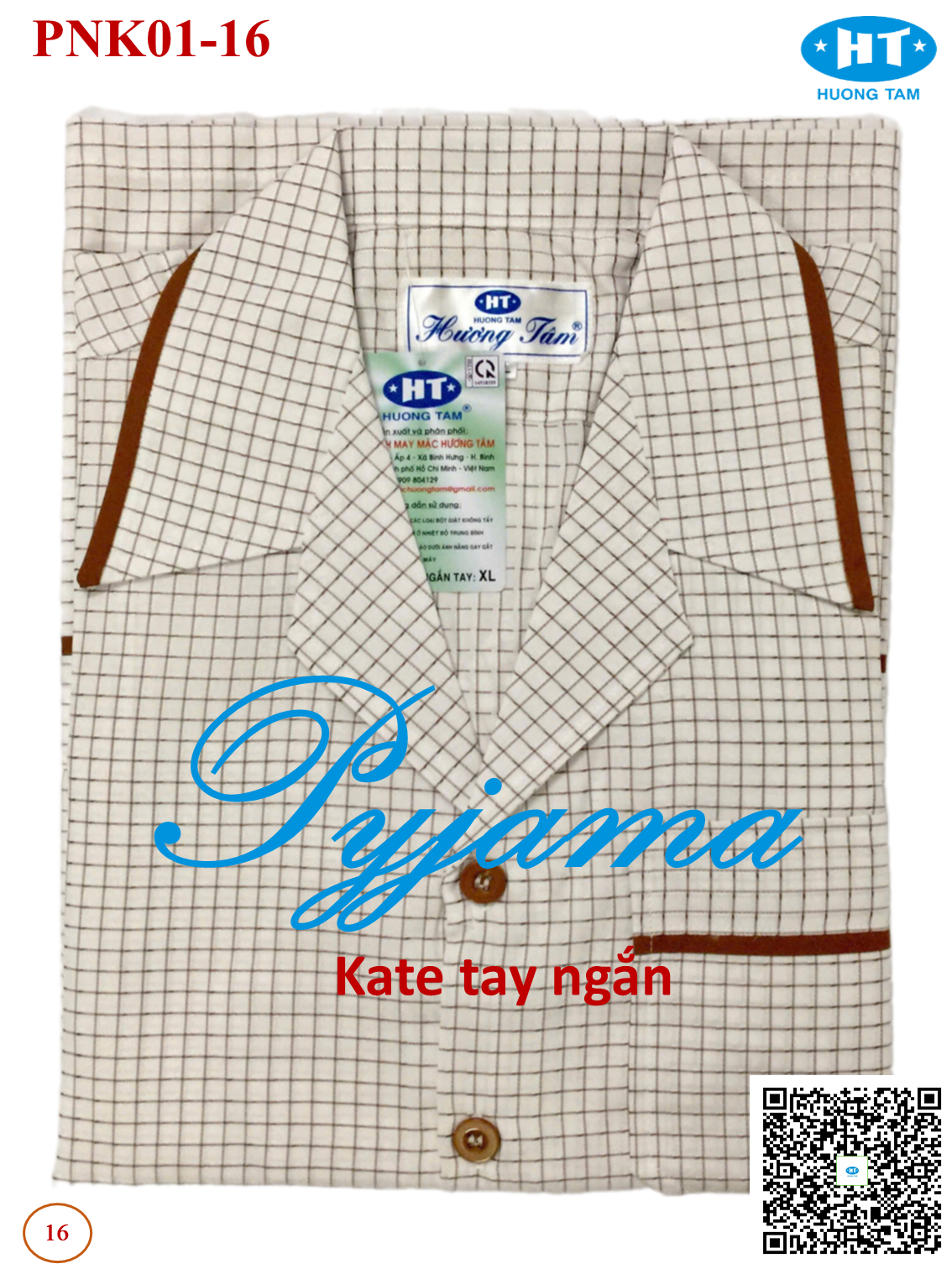Bộ Pyjama HUONGTAM Kate tay ngắn nam cao cấp(PNK02N10). Chất liệu Kate loại tốt: mềm mại, thoáng mát, không phai màu.