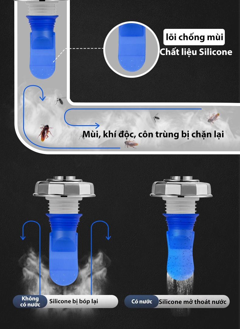 Sản phẩm thoát nước tốt, ngăn mùi, ngăn côn trùng hiệu quả ngay khi lắp.