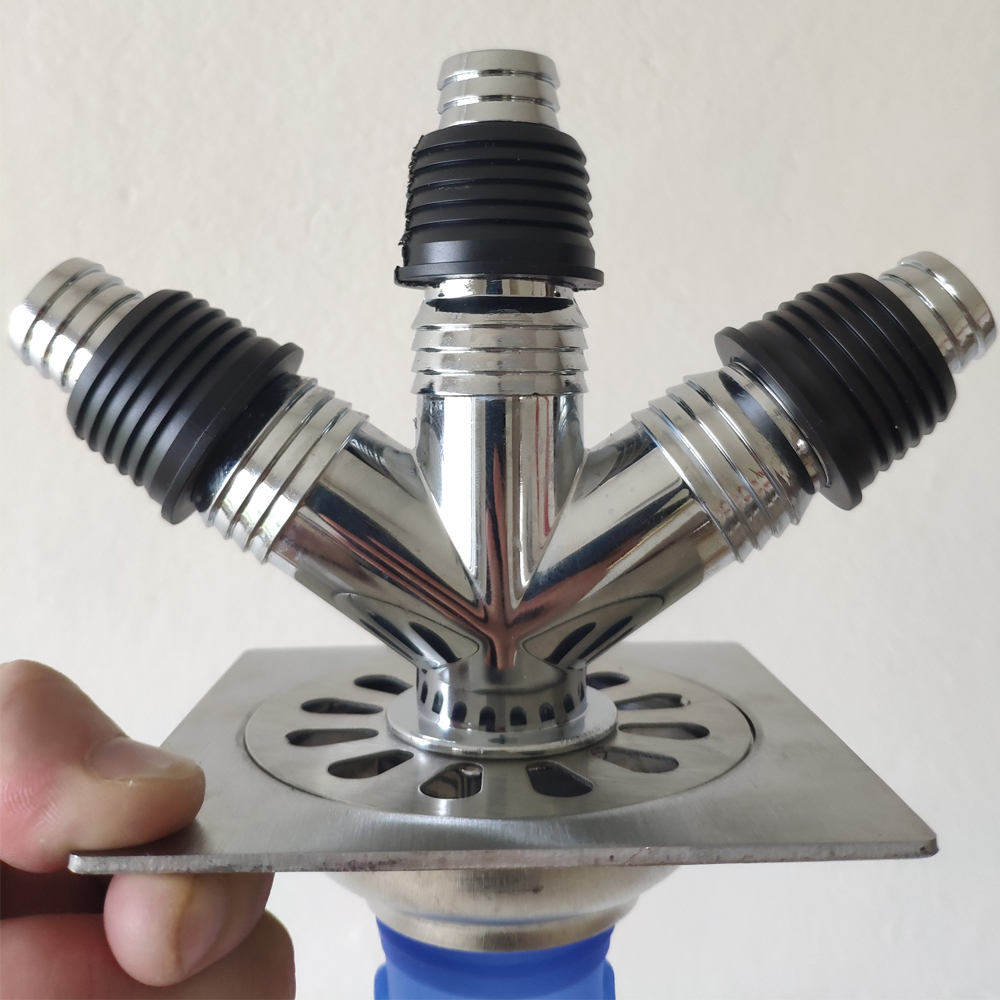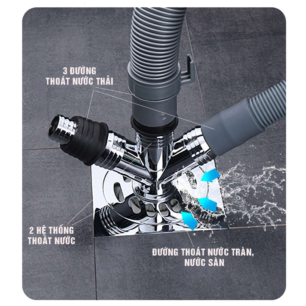 Ưu điểm: Thoát nước cùng lúc 3 thiết bị như máy giặt và chậu rửa, nước điều hòa (Hoặc đầu thải khác …) bên cạnh đó nước sàn vẫn thoát được bình thường.