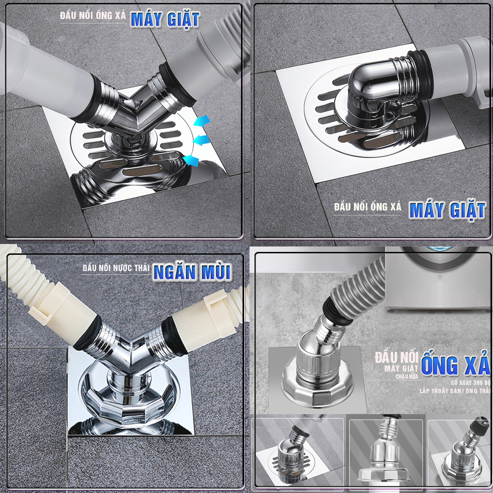 Hướng dẫn sử dụng: Lắp bộ này vào thoát sàn sẵn có, gắn đầu ống thải của Máy giặt, chậu rửa… vào đầu nối thoát nước thải vào là được
