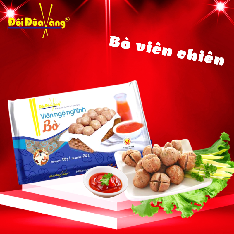 Bò viên chiên Đôi Đũa Vàng 150g viên thả lẩu đậm đà từ thịt bò sạch