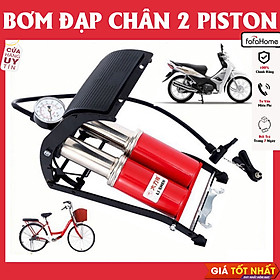 Bơm đạp chân 2 piston xi lanh cao cấp để bơm xe đạp, xe máy, ô tô, bóng, phao