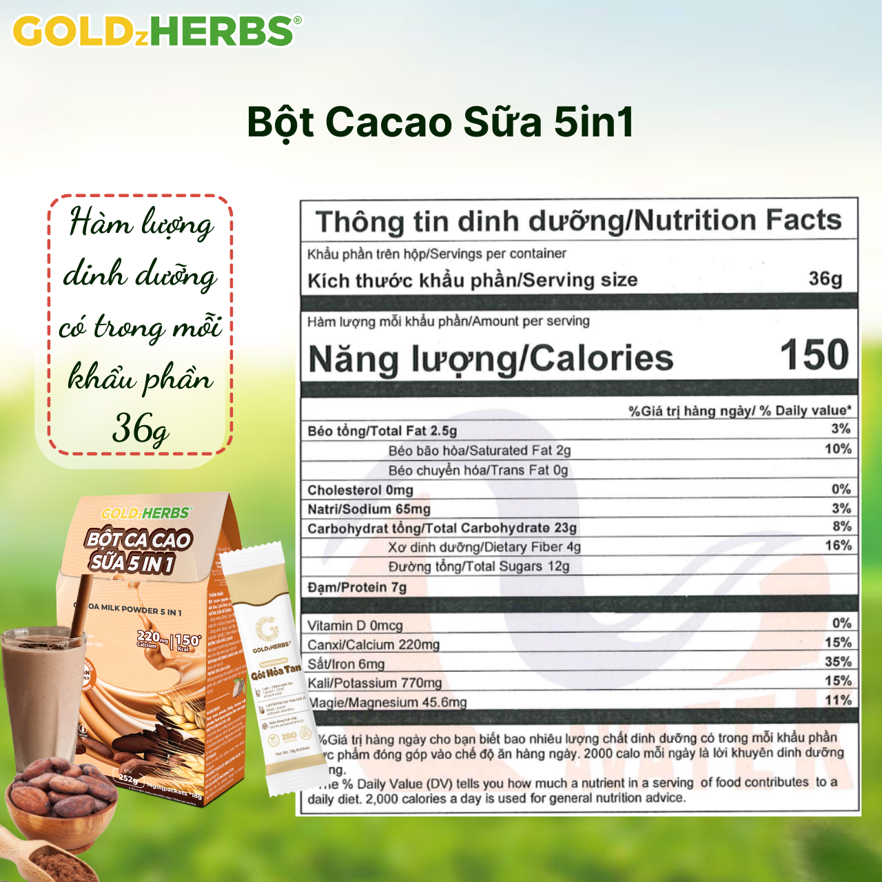 Bột ca cao nguyên chất GoldzHerbs – 100% từ ca cao tự nhiên – 14 gói/ 400g/ 500g
