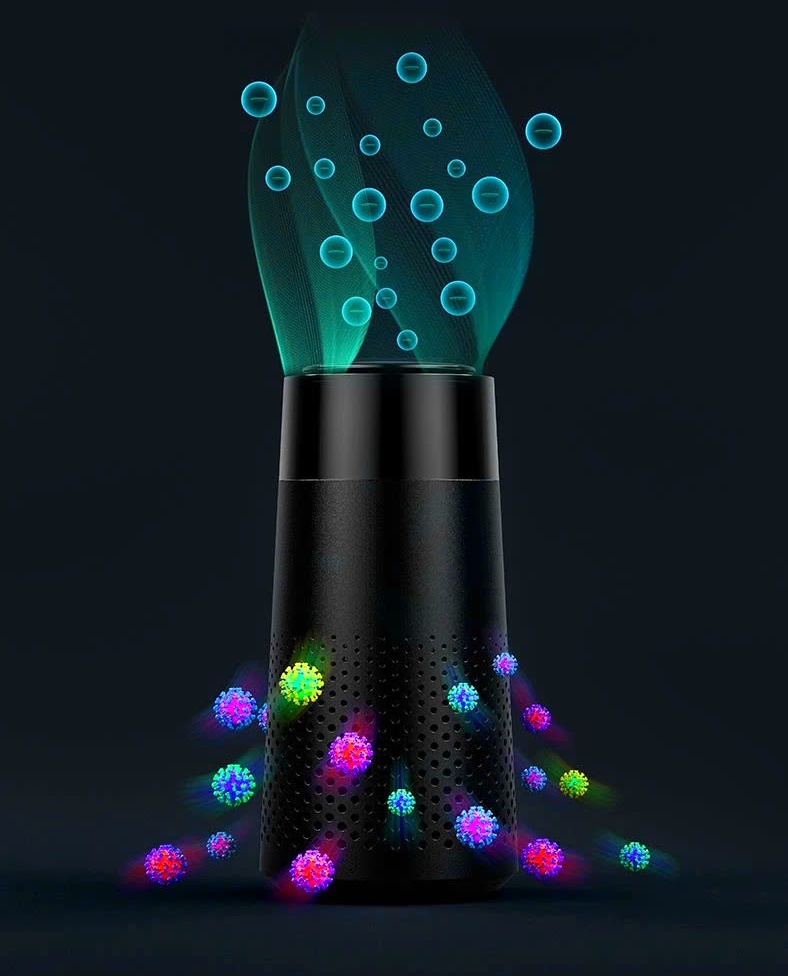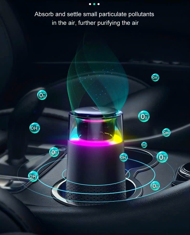 Máy Lọc Không Khí Xe Hơi HEPA PM2.5 Khử Mùi/Formaldehyde/-Ion LED 3D Cảm Ứng 17 Màu Gradient Chạy Cực Đẹp