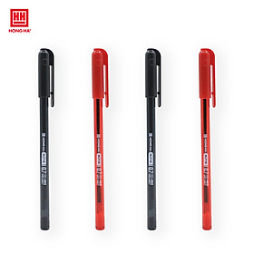 Bút bi Hồng Hà đầu bi 0.7mm viết êm, trơn mực Đen, Đỏ - 2467