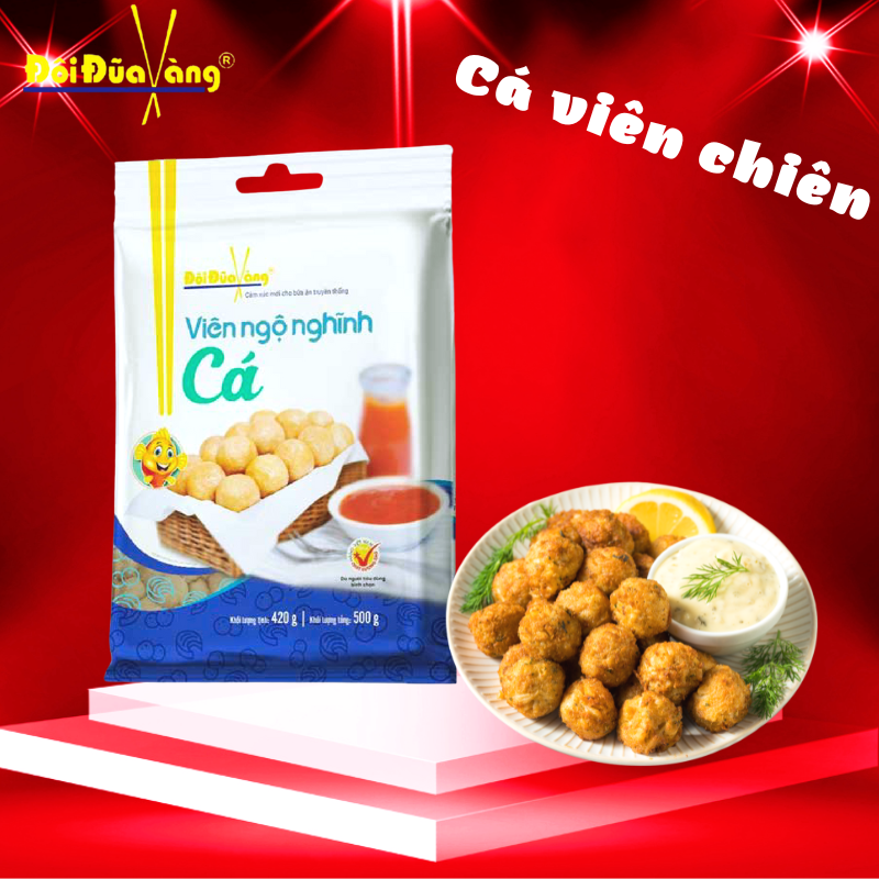Cá viên chiên Đôi Đũa Vàng 420g, viên thả lẩu hải sản thơm ngon