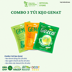 Combo 3 túi 20 viên - Kẹo thảo mộc Gezcol - Genat Chanh Sả - Genat Gừng - Giao 2H HCM