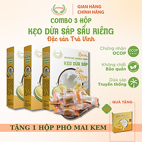 Combo 3 hộp Kẹo dừa sáp VICOSAP vị sầu riêng kẹo mềm dẻo ít đường đặc sản Trà Vinh 100g Snack Food